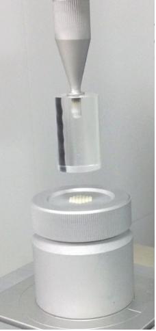 (1)P/DP面团准备装置: 样品放置在装置尖柱转移空气,平坦的表面是应用扁平化活塞。6mm柱形探头是用来测量面团的硬度和粘稠度。
