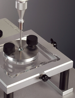 P/FSR撑破装置可用于薄膜、蔬菜叶和茶叶等样品的撑破实验。将茶叶新梢放于装置的中间,用上面两个螺丝固定,然后再用球形探头对试样进行挤压,直至试样被撑破,可以测出茶叶新梢的撑破强度。