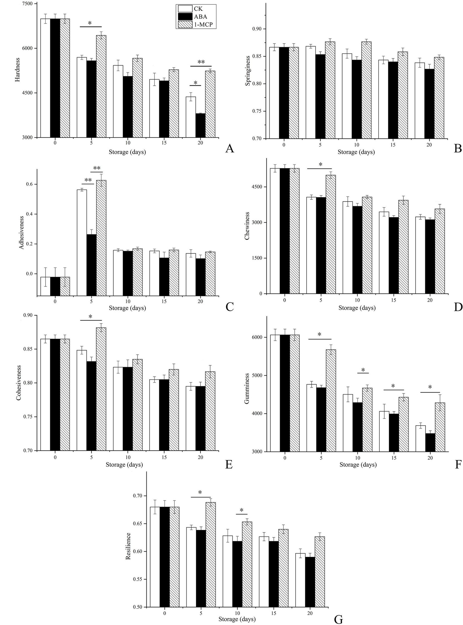 近日,桂林理工大学化学与生物工程学院研究人员在国际食品期刊《Journal of Food Processing and Preservation》(IF=2.190)发表了题为"Effects of 1-methylcyclopropene and abscisic acid treatments on texture properties and microstructures of postharvest tangerine (Citrus reticulata cv. Orah) "的研究论文。在该论文中,研究人员使用上海腾拔Universal TA研究型质构仪测定了柑橘的硬度、弹性、回复性、咀嚼性和内聚性等指标。