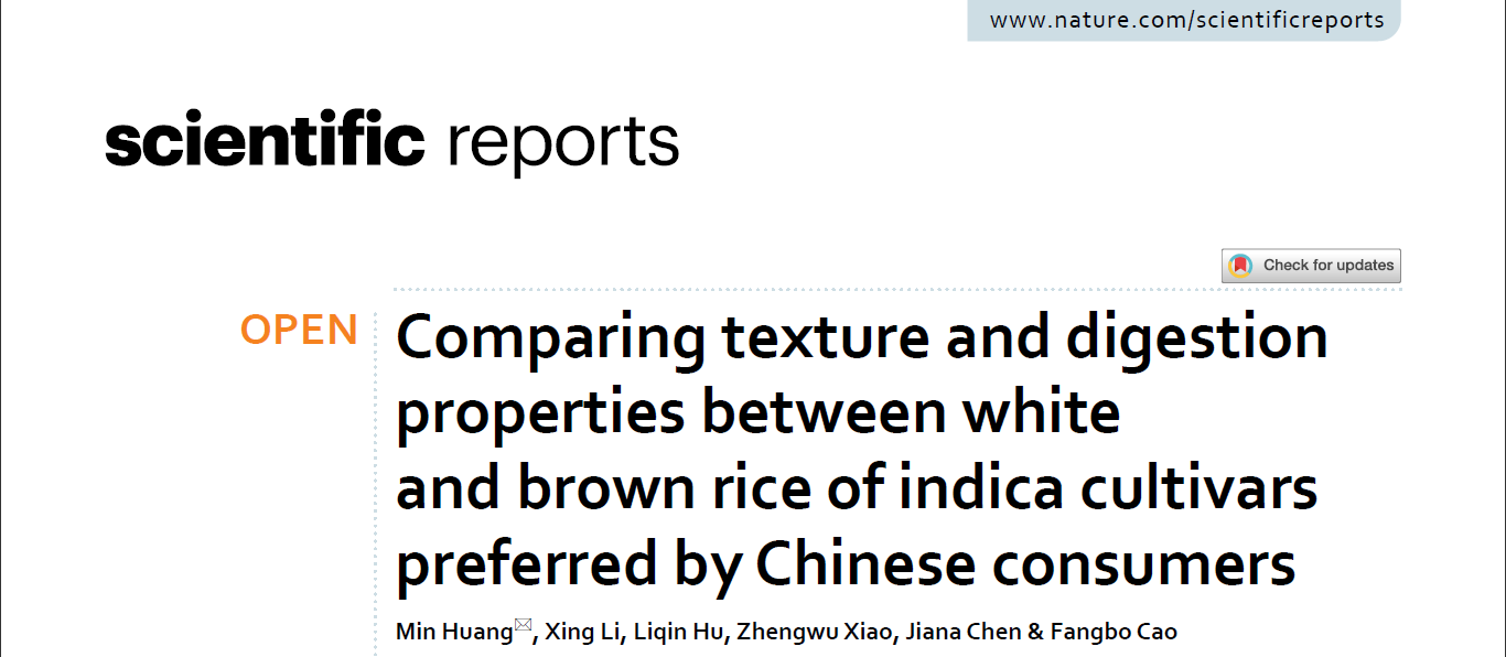 上海腾拔Rapid TA+质构仪助力湖南农业大学作物生理与分子生物学教育部重点实验室研究人员在Nature子刊《Scientific Reports》发表了题为“Comparing texture and digestion properties between white and brown rice of indica c*rs preferred by Chinese consumers"的研究论文。