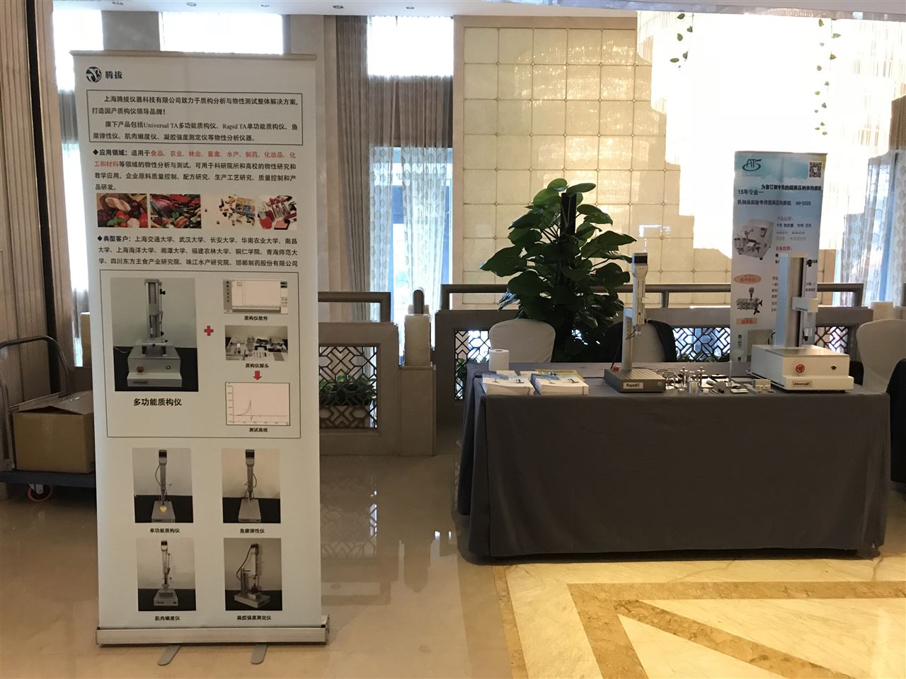 上海腾拔仪器科技有限公司应邀参加了本次会议。并在会议举办地浙江三立开元名都大酒店设立了相应的产品展台,展示了公司的Universal TA多功能质构仪和Rapid TA单功能质构仪等物性分析仪器。